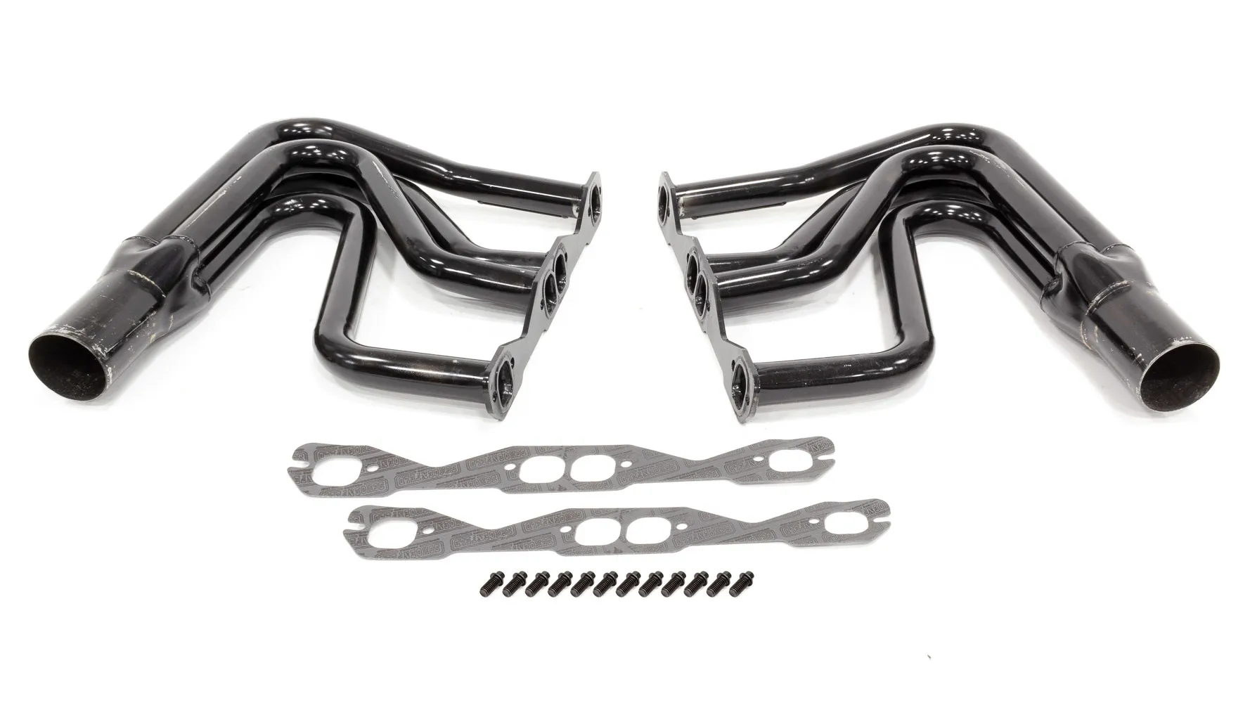 Headers – DIRT Modified – 1.625 in Primary – 3 in Collector – Gaskets / Hardware Included – Steel – Black Paint – Small Block Chevy – Pair