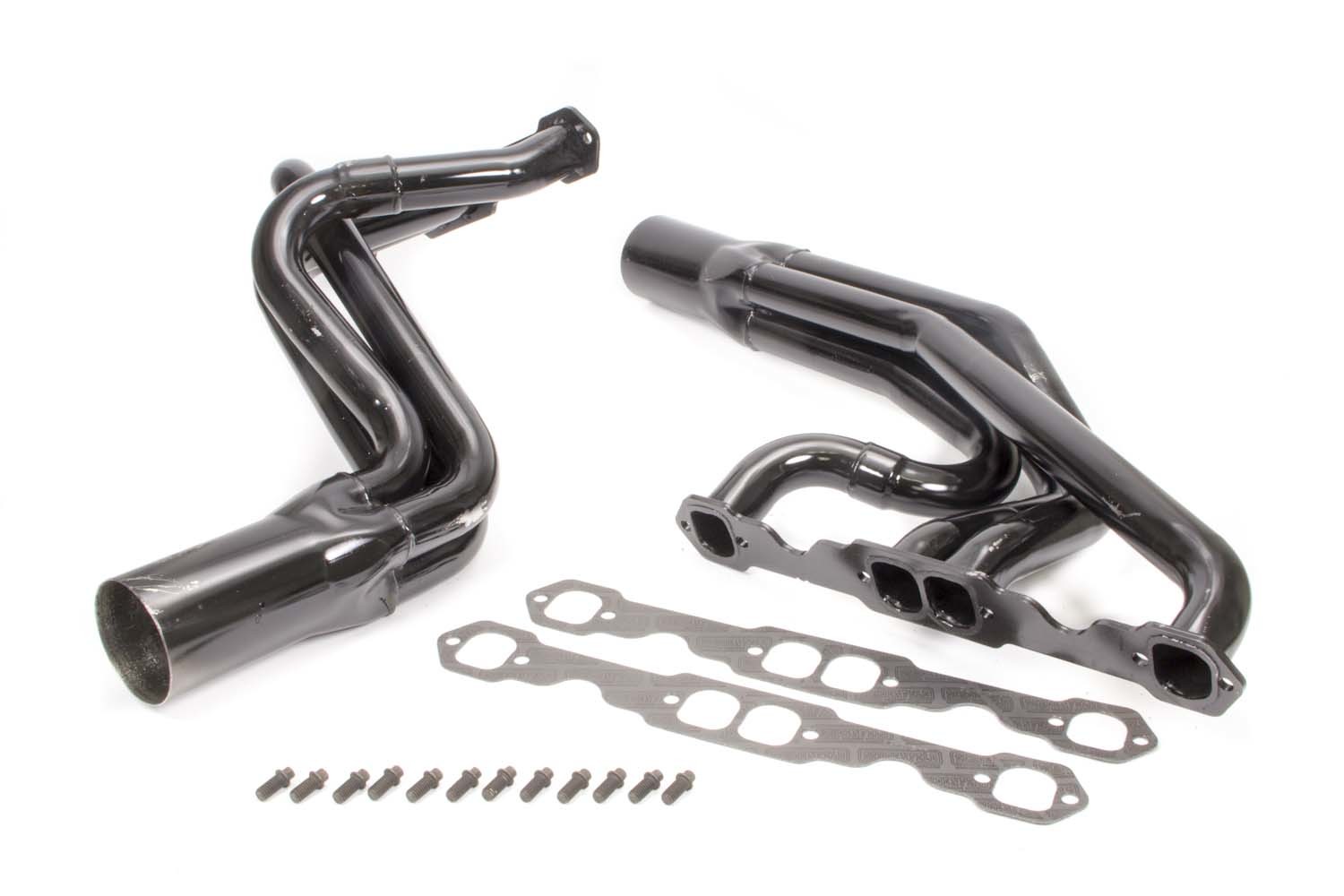 Headers – Dirt Late Model – 1.75 in Primary – 3.5 in Collector – Gaskets / Hardware Included – Steel – Black Paint – Small Block Chevy – Pair