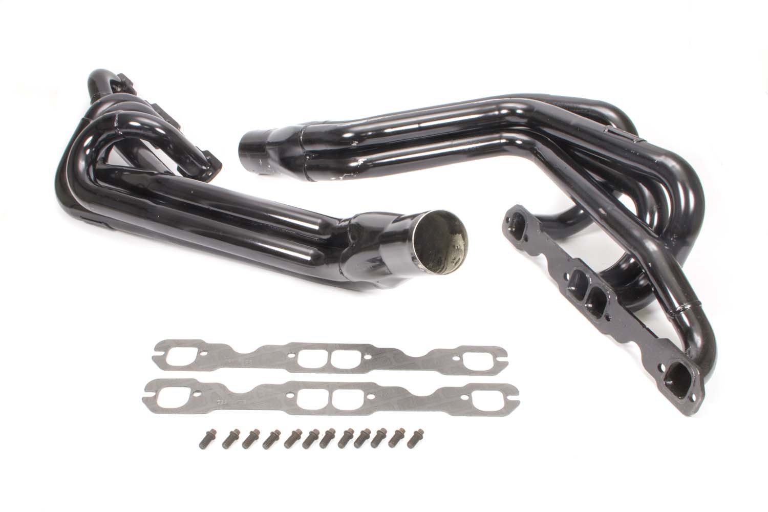 Headers – Conventional Crossover – 1.625 to 1.75 in Primary – 3 in Collector – Gaskets / Hardware Included – Steel – Black Paint – Small Block Chevy – Pair