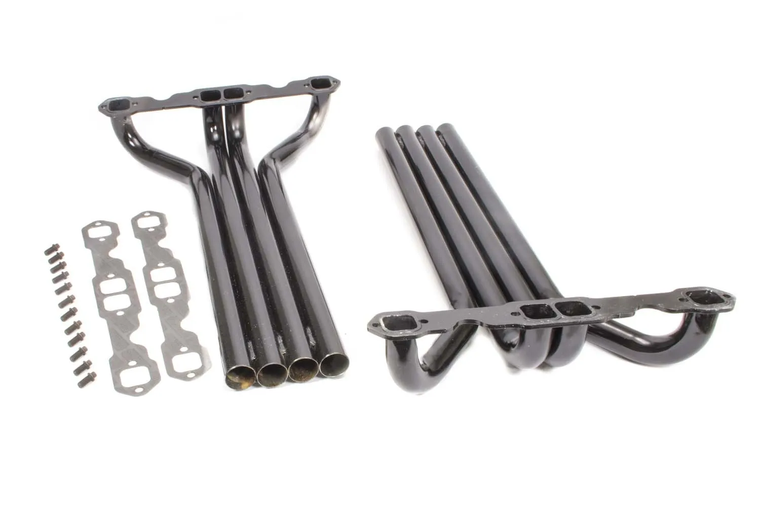 Headers – Demolition Derby – 1.625 in Primary – Exits Through Hood – Gaskets / Hardware Included – Steel – Black Paint – Small Block Chevy – Pair