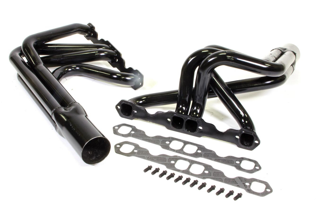 Headers – IMCA Modified – 1.75 in Primary – 3.5 in Collector – Gaskets / Hardware Included – Steel – Black Paint – Small Block Chevy – Pair