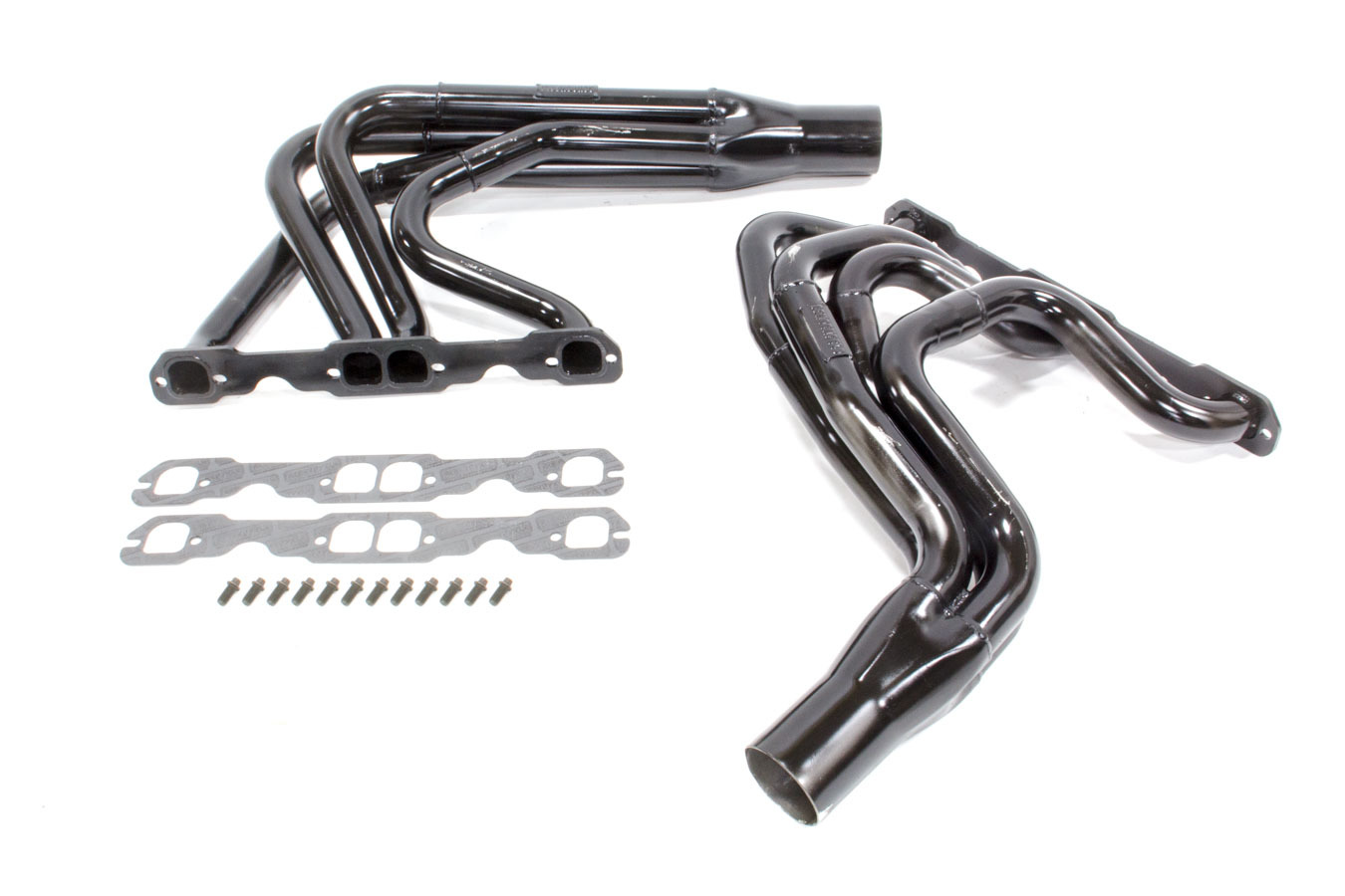 Headers – IMCA Modified – 1.625 to 1.75 in Primary – 3 in Collector – Gaskets / Hardware Included – Steel – Black Paint – Small Block Chevy – Pair