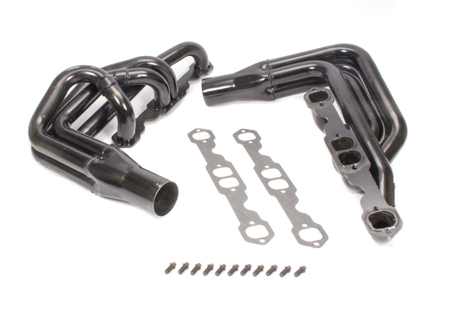 Headers – IMCA-UMP Stock Car – 1.75 in Primary – 3 in Collector – Gaskets / Hardware Included – Steel – Black Paint – Small Block Chevy – Pair