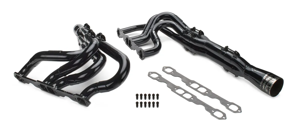 Headers – IMCA Modified Tri-Y – 1.75 to 1.875 in Primary – 3.5 in Collector – Gaskets / Hardware Included – Steel – Black Paint – Small Block Chevy – Pair