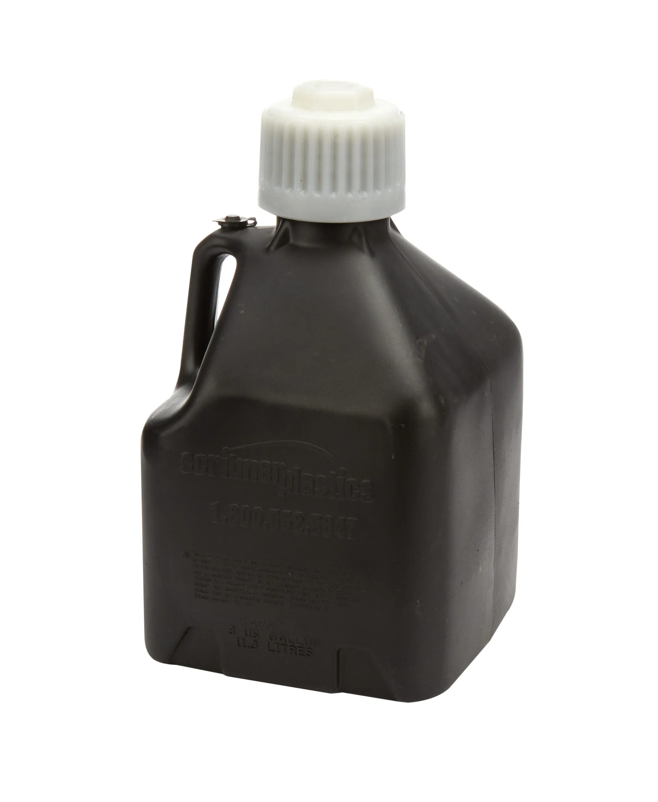 Utility Jug – 3 gal – 9.5 x 9.5 x 16 in Tall – Gasket Seal Cap – Flip-Up Vent – Square – Plastic – Black – Each