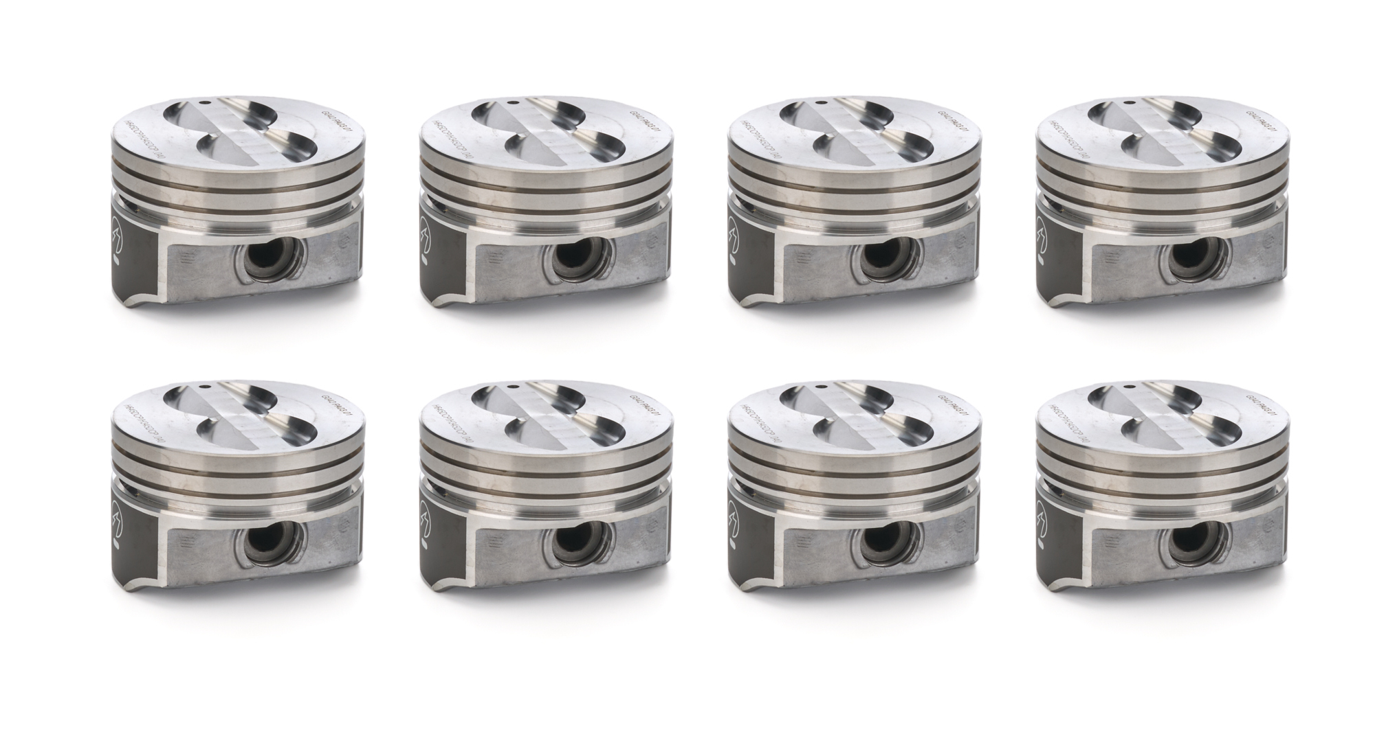Piston – Speed Pro – Hypereutectic – 4.040 in Bore – 5/64 x 5/64 x 3/16 in Ring Grooves – Minus 6.90 cc – Coated Skirt – Small Block Chevy – Set of 8