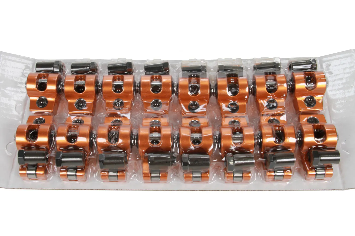 Rocker Arm – Heavy Duty – 7/16 in Stud Mount – 1.60 Ratio – Full Roller – Aluminum – Orange Anodized – Small Block Chevy – Set of 16