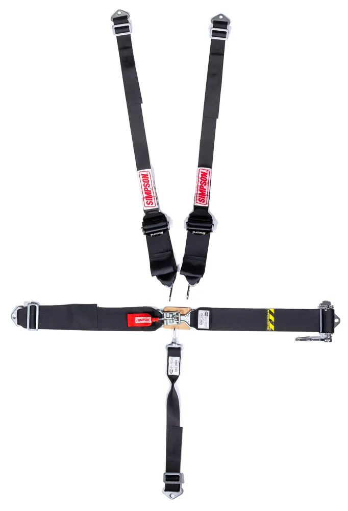 Harness – 5 Point – Platinum Plus – Latch and Link – SFI 16.1 – Pull Down / Left Side Aluminum Ratchet Adjuster – Bolt-In / Wrap Around – Individual Harness – Black – Kit