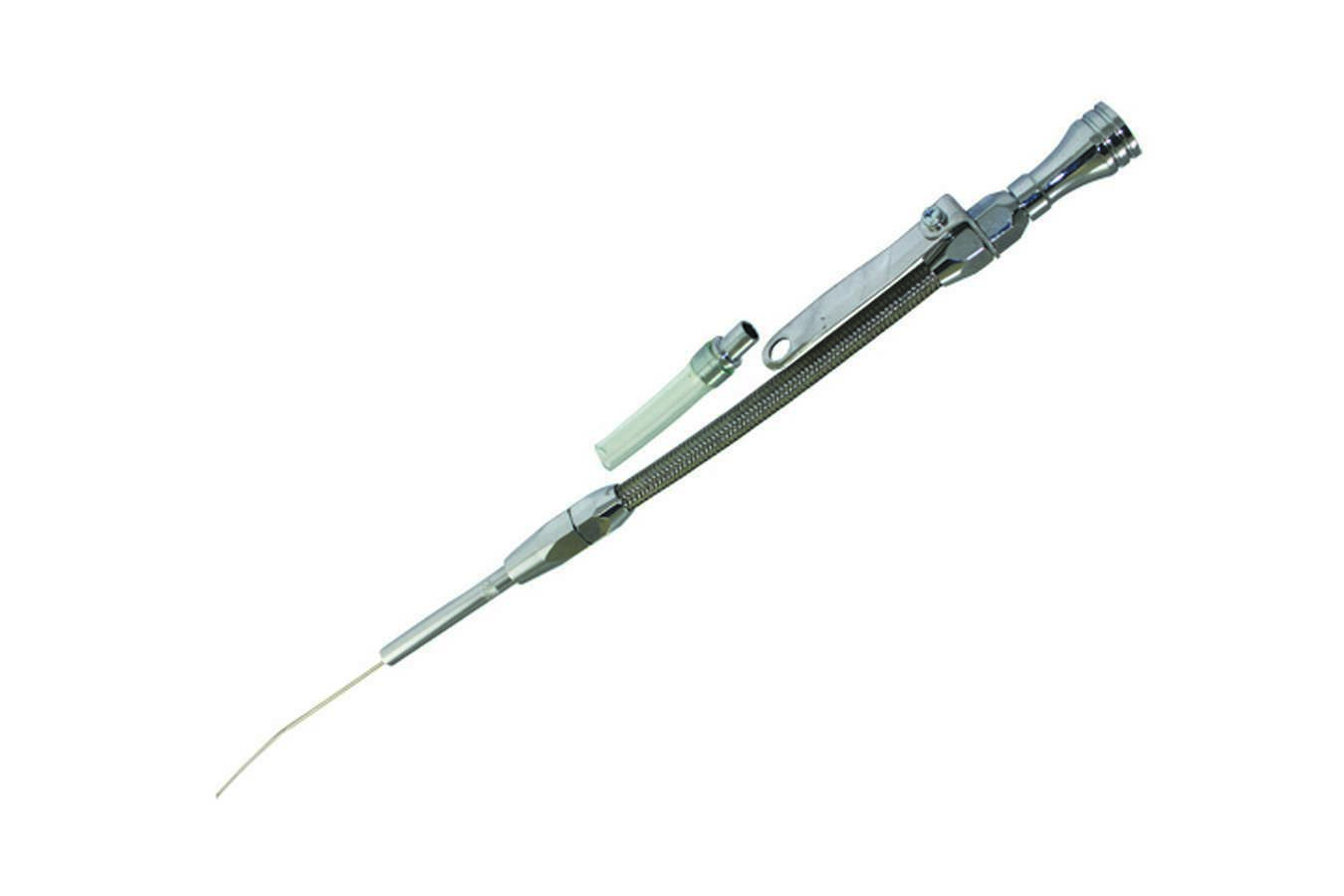 Engine Oil Dipstick – Flexible – Block Mount – Braided Stainless – Aluminum – Chrome – Small Block Chevy – Each