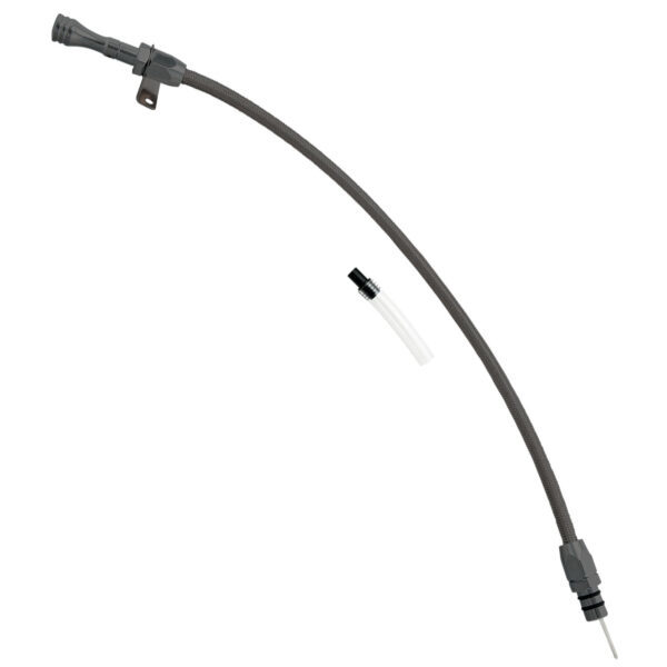 Transmission Dipstick – Transmission Mount – Flexible – OEM Length – Braided Stainless – Aluminum – Black Anodized – 700R4 – Each