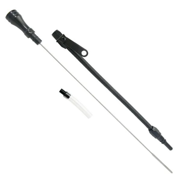 Engine Oil Dipstick – Flexible – Pan Mount – Braided Stainless – Aluminum – Black Anodized – Big Block Chevy – Each
