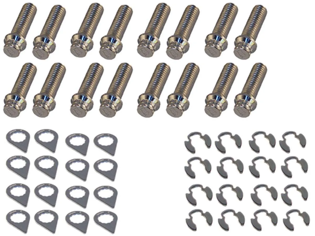 Header Bolt – Locking – 3/8-16 in Thread – 1.25 in Long – 12 Point Head – Steel – Nickel Plated – Small Block Ford – Set of 16