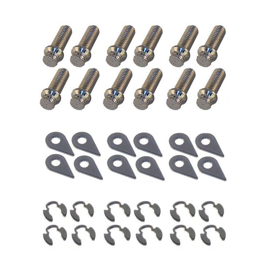 Header Bolt – Locking – 5/16-18 in Thread – 1 in Long – 12 Point Head – Steel – Nickel Plated – Small Block Mopar – Set of 12