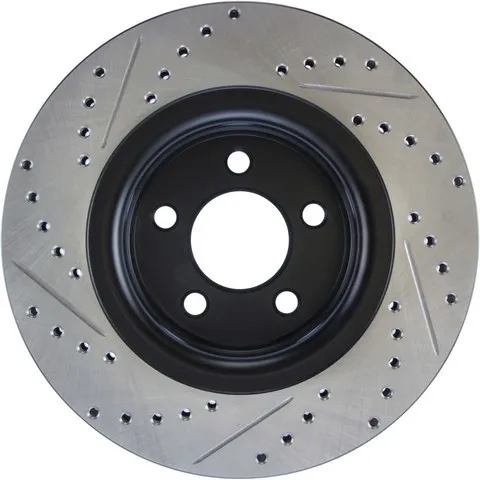 Brake Rotor – Premium – Front – Driver Side – 320 mm OD – 30 mm Thick – 5 x 114.3 mm Bolt Pattern – Drilled / Slotted – Iron – Black Paint – Ford Mustang 2015-20 – Each
