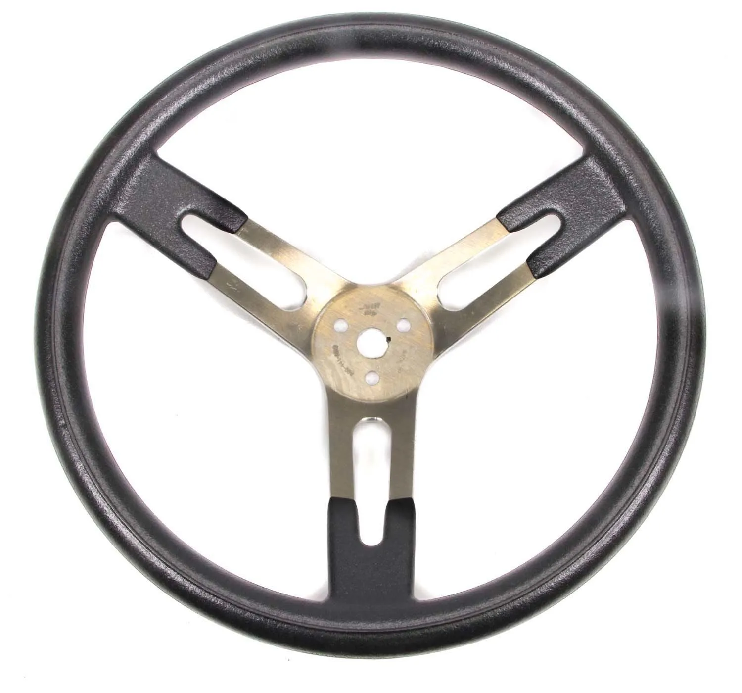 Steering Wheel – 17 in Diameter – 3 in Dish – 3-Spoke – Black Rubberized Bump Grip – Aluminum – Brushed – Each