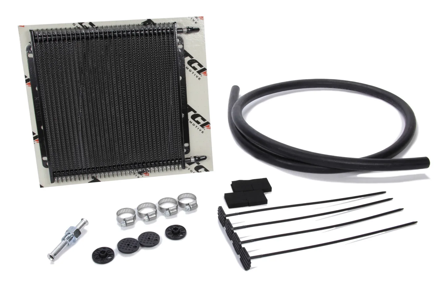Fluid Cooler – Max Cool – 11 x 9.5 x 0.75 in – Plate and Fin Type – 11/32 in Hose Barb Inlet / Outlet – Fitting / Hardware / Hose – Aluminum – Black Paint – Automatic Transmission – Kit