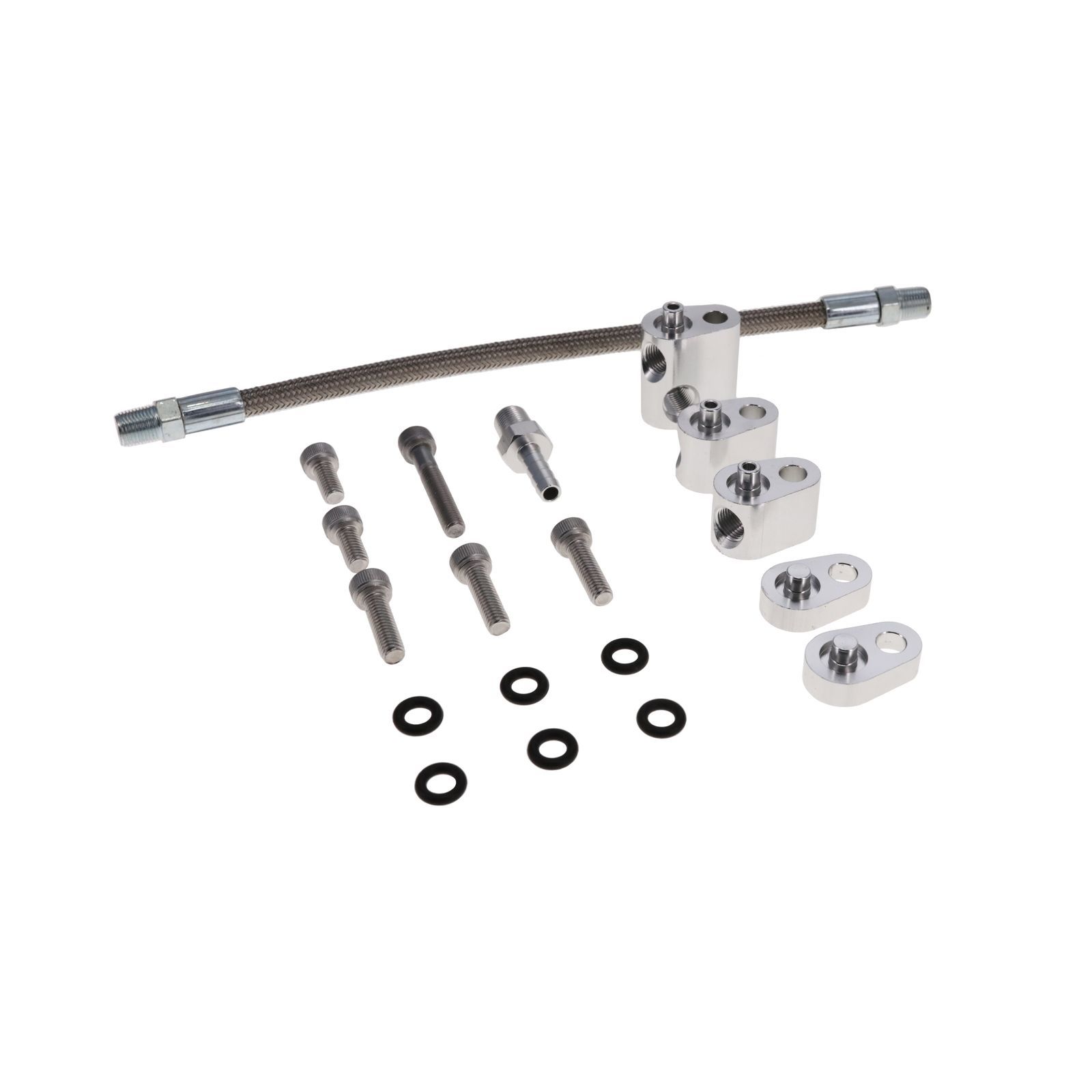 Steam Vent Kit – Fitting / Hardware / Braided Hose / Blockoffs – Aluminum / Stainless – Natural – GM LS-Series – Kit