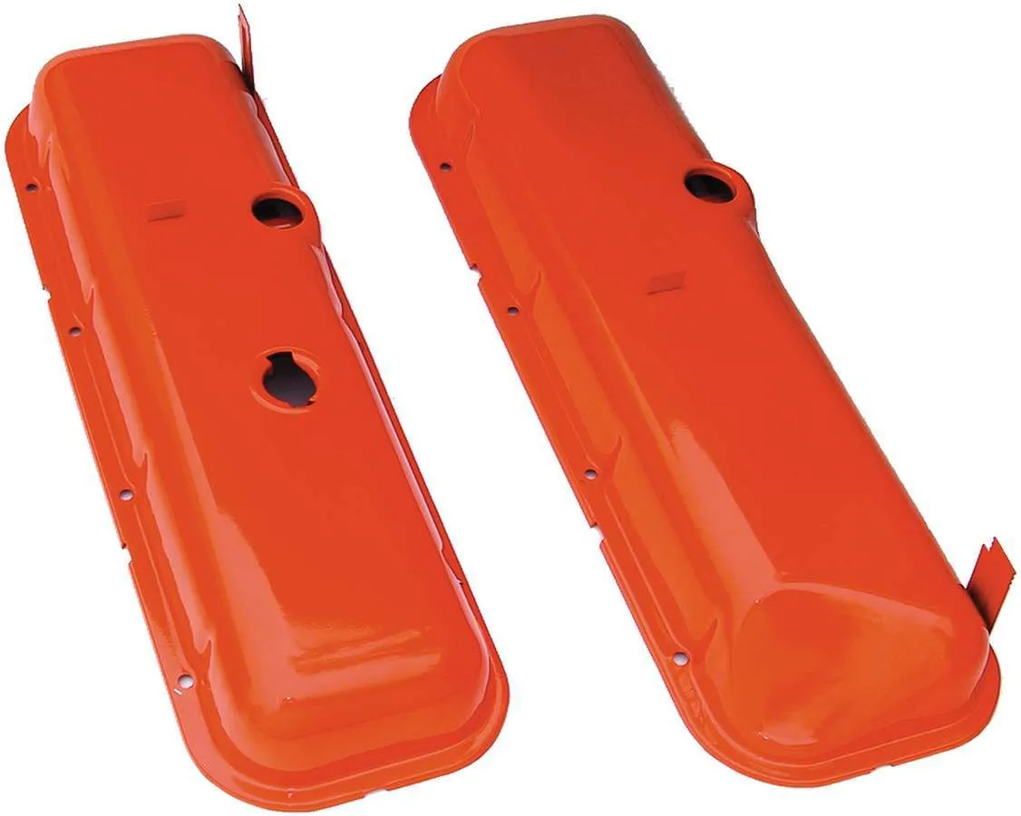 Valve Cover – Stock Height – Baffled – Breather Holes – Steel – Orange Powder Coat – Big Block Chevy – Pair