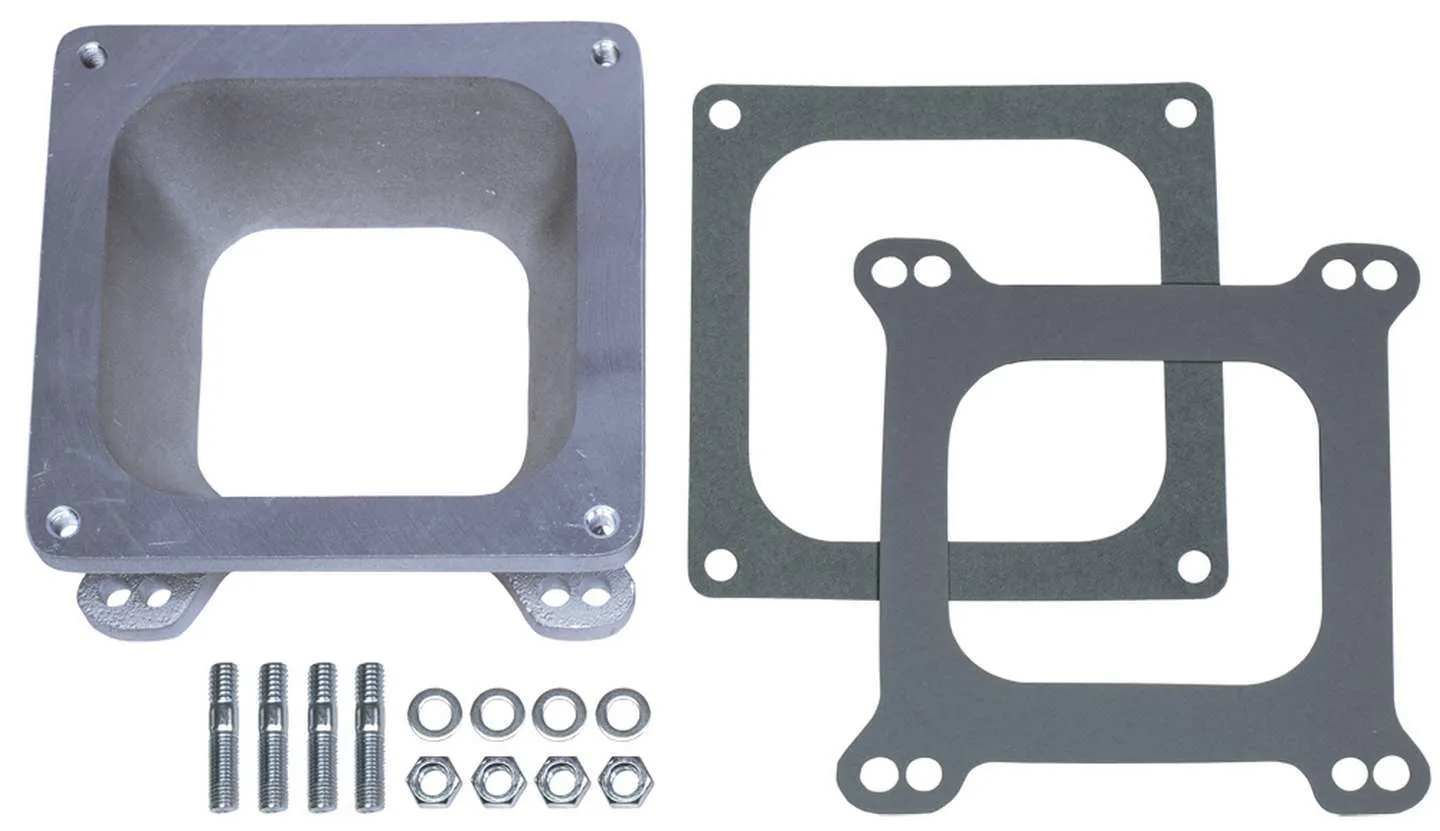 Carburetor Adapter – 2.125 in Thick – Open – Dominator to Square Bore – Gaskets / Hardware Included – Aluminum – Natural – Each