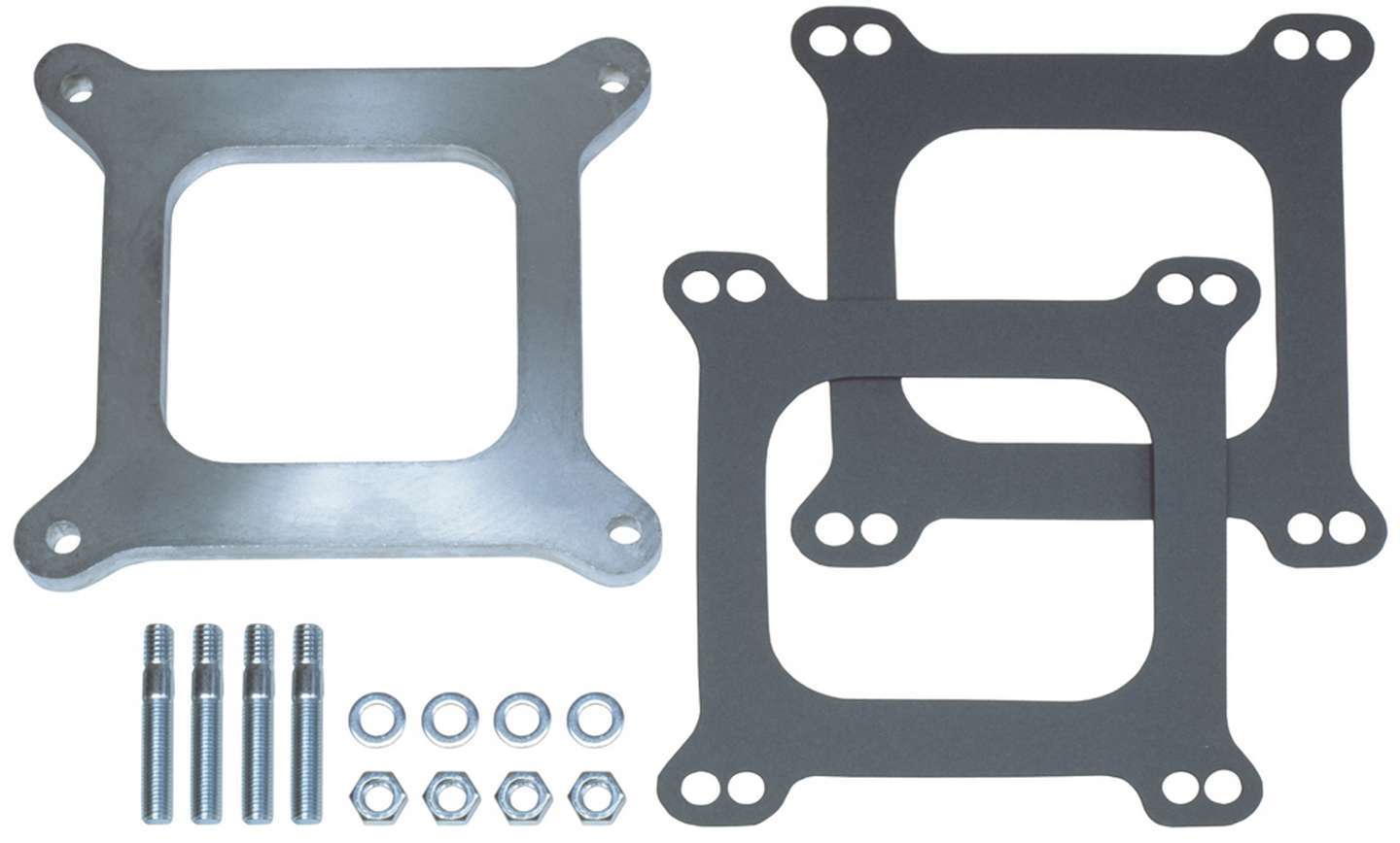 Carburetor Spacer – 0.375 in Thick – Open – Square Bore – Gasket / Hardware Included – Aluminum – Natural – Each