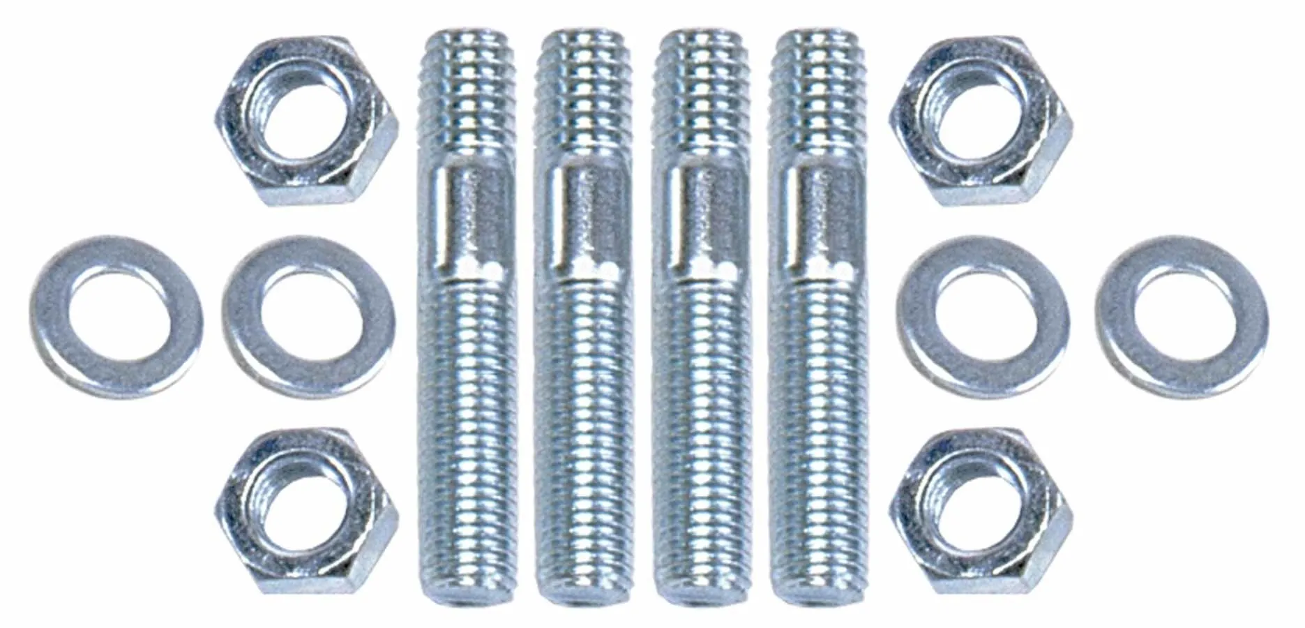 Carburetor Stud – 5/16-18 and 5/16-24 in Thread – 2 in Long – Hex Nuts – Steel – Zinc Oxide – Set of 4
