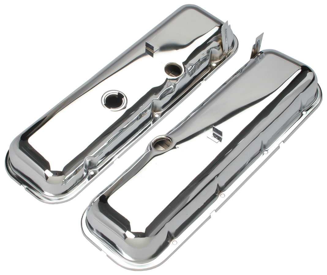 Valve Cover – Stock Height – Baffled – Breather Holes – Steel – Chrome – Big Block Chevy – Pair