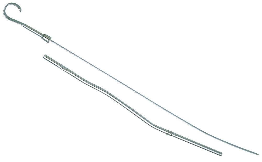 Engine Oil Dipstick – Solid Tube – Block Mount – 20 in Long – Steel – Chrome – Oldsmobile V8 – Each