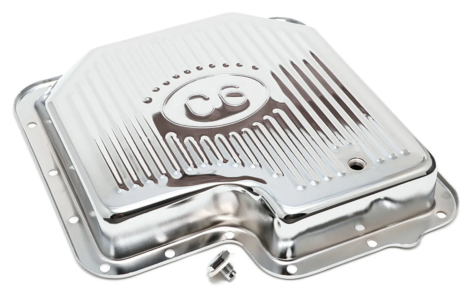 Transmission Pan – Stock Depth – Ribbed – Steel – Chrome – C6 – Each