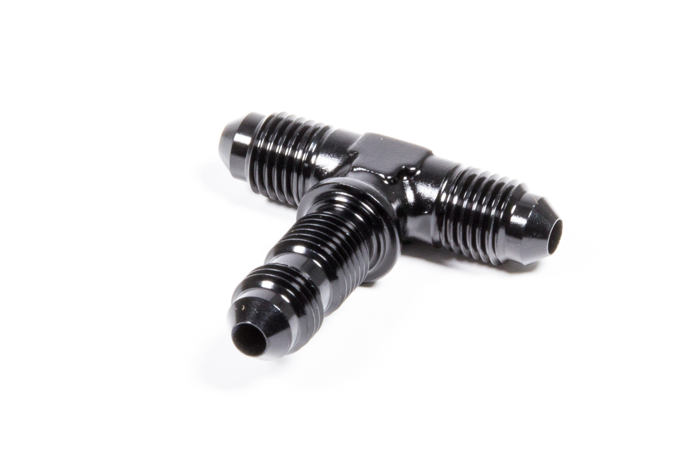 Fitting – Bulkhead Tee – 4 AN Male x 4 AN Male x 4 AN Male Bulkhead – Aluminum – Black Anodized – Each