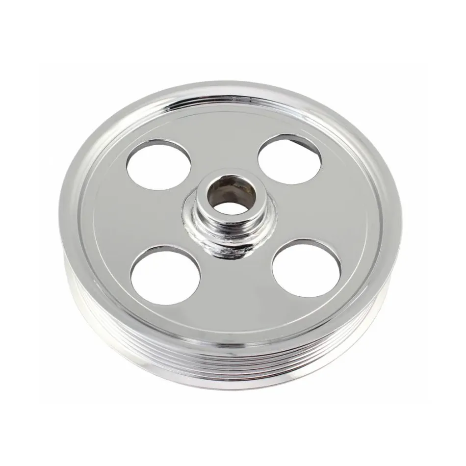 Power Steering Pump Pulley – Serpentine – 6 Groove – Press-On – 5.25 in Diameter – Aluminum – Chrome – Tuff Stuff Type 2 Pumps – Each