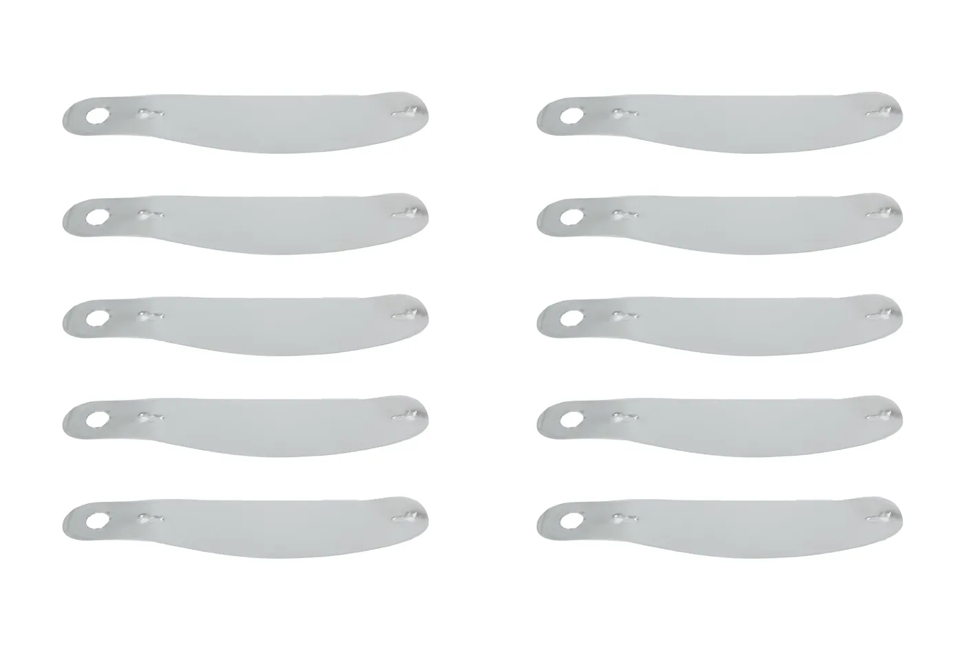 Helmet Shield Tear Off – 2 mm Thick – 11.5 in Center to Center – Plastic – Clear – Arai / Bell / HJC / Icon / Shoei Helmets – Set of 200