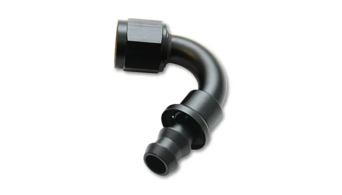 Fitting – Hose End – 120 Degree – 8 AN Hose Barb to 8 AN Female – Aluminum – Black Anodized – Each