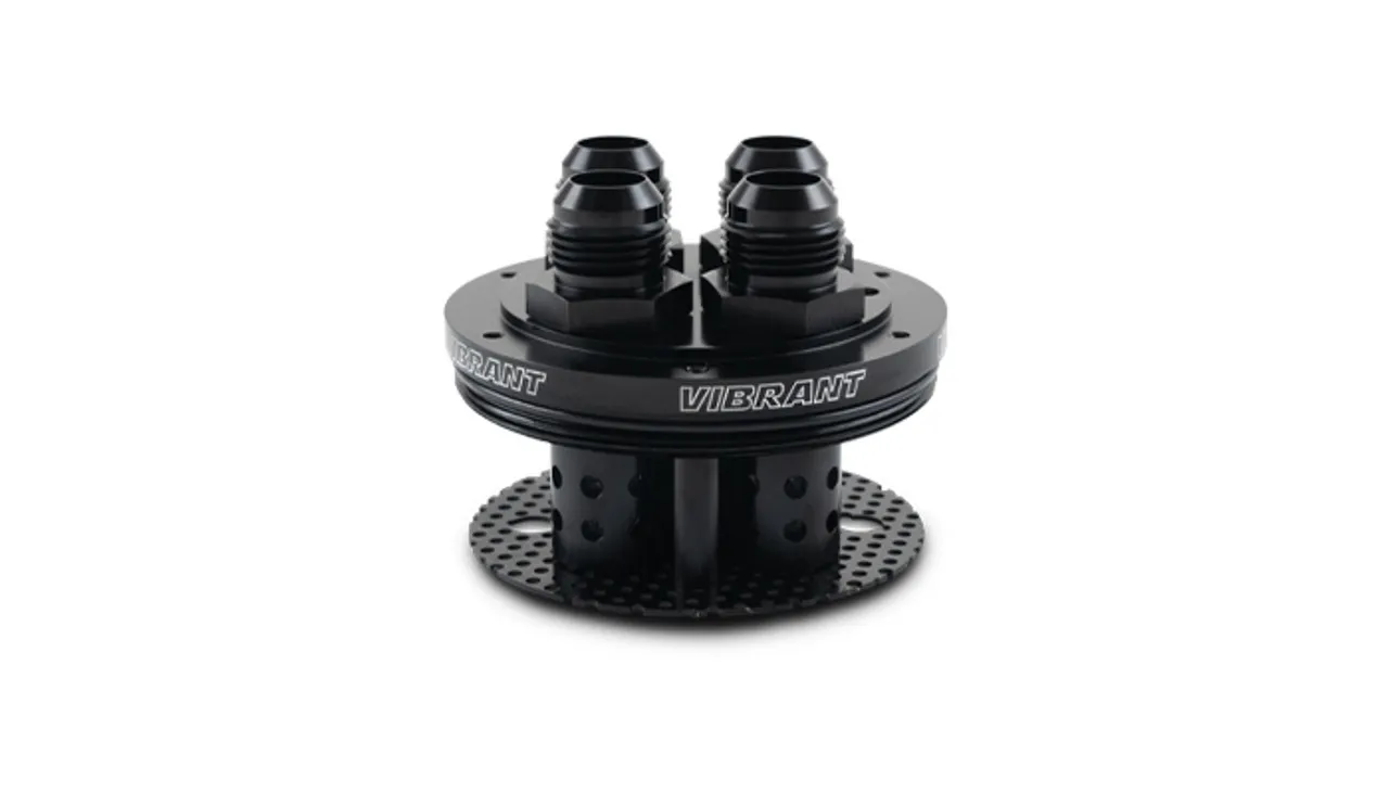 Catch Can Lid – 4-Port – 12 AN Ports – Fittings / Filter Barrels Included – Aluminum – Black Anodized – Each