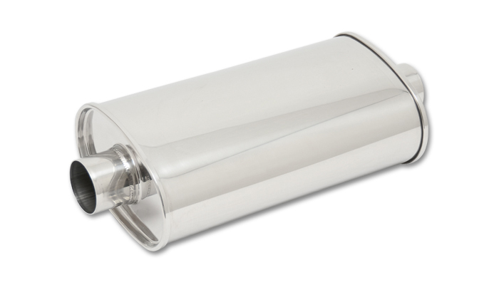Muffler – Street Power – 2.25 in Center Inlet – 2.25 in Center Outlet – 15 x 5 x 9 in Oval Body – 19 in Body – Stainless – Polished – Each