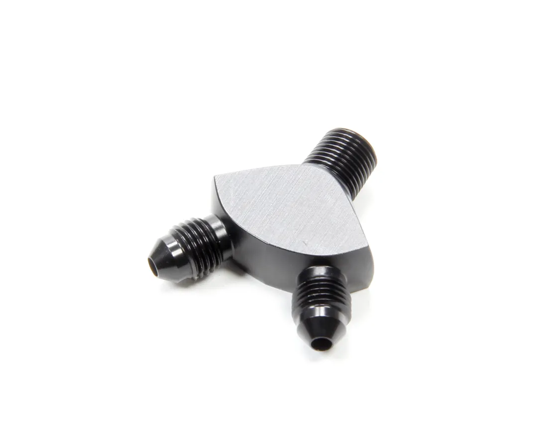 Fitting – Y Block – 1/8 in Male Inlet – Dual 3 AN Male Outlets – Aluminum – Black Anodized – Each