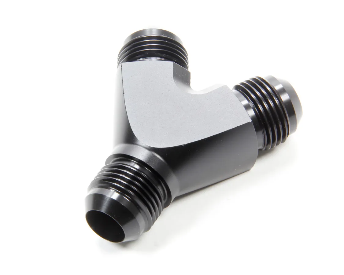 Fitting – Y Block – 10 AN Male Inlet – Dual 10 AN Male Outlets – Aluminum – Black Anodized – Each