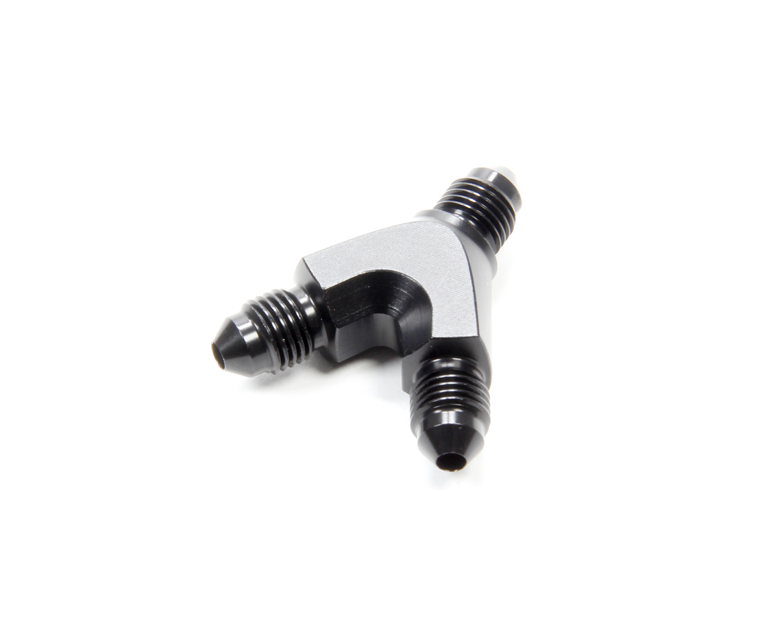 Fitting – Y Block – 3 AN Male Inlet – Dual 3 AN Male Outlets – Aluminum – Black Anodized – Each