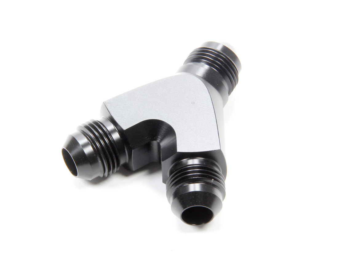 Fitting – Y Block – 8 AN Male Inlet – Dual 8 AN Male Outlets – Aluminum – Black Anodized – Each