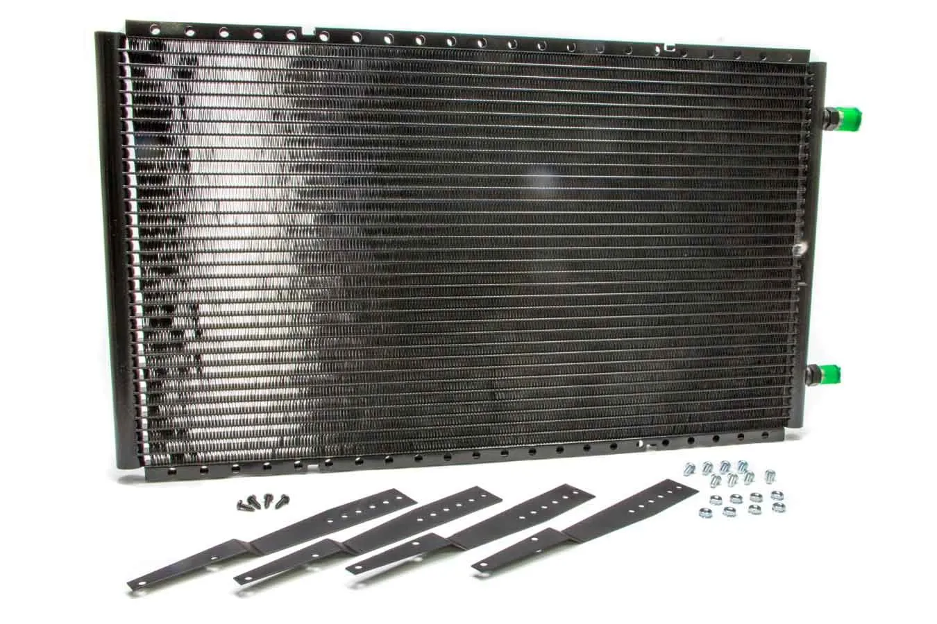 Air Conditioning Condenser – SuperFlow – Horizontal – 24 x 14 x 0.83 in – 6 AN / 8 AN Male O-Ring Fittings – Brackets – Aluminum – Black Paint – Each