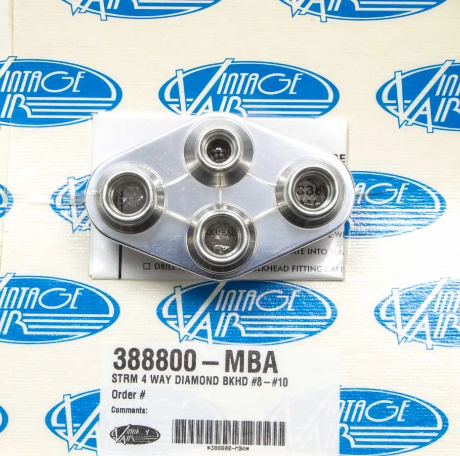 Bulkhead Plate – Streamline – 4 Port Diamond – 8 AN Male O-Ring to 10 AN Male O-Ring – Aluminum – Polished – Each