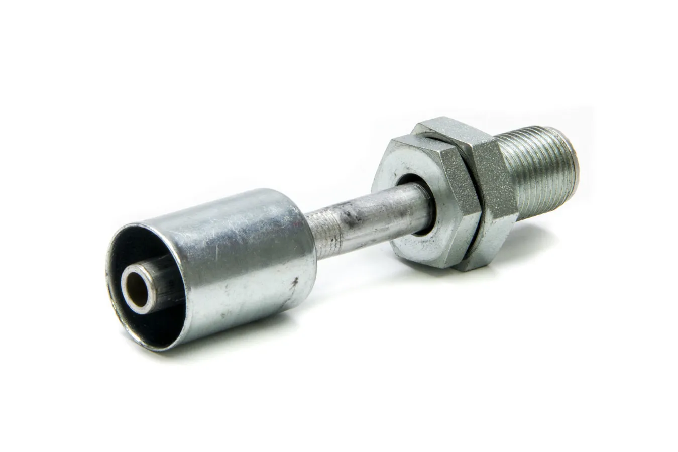 Fitting – Bulkhead – AC Refrigerant – Straight – 8 AN Hose Crimp to 8 AN Male O-Ring Bulkhead – Aluminum / Steel – Natural / Zinc Oxide – Each
