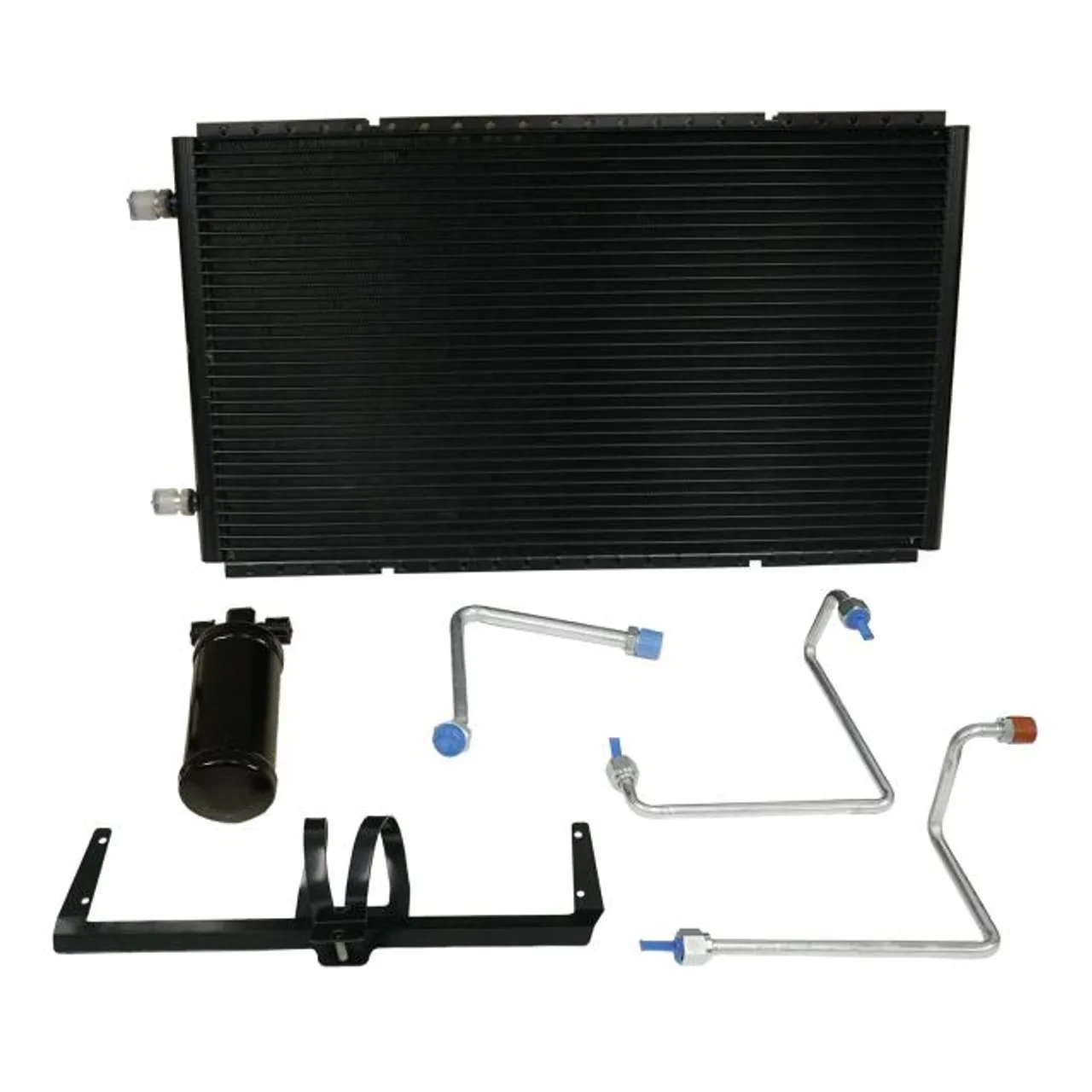 Air Conditioning Condenser and Drier – SureFit – Horizontal – 24 x 14 x 0.83 in – 6 AN / 8 AN Male O-Ring Fittings – Brackets – Aluminum – Black Paint – GM A-Body 1970-72 – Kit
