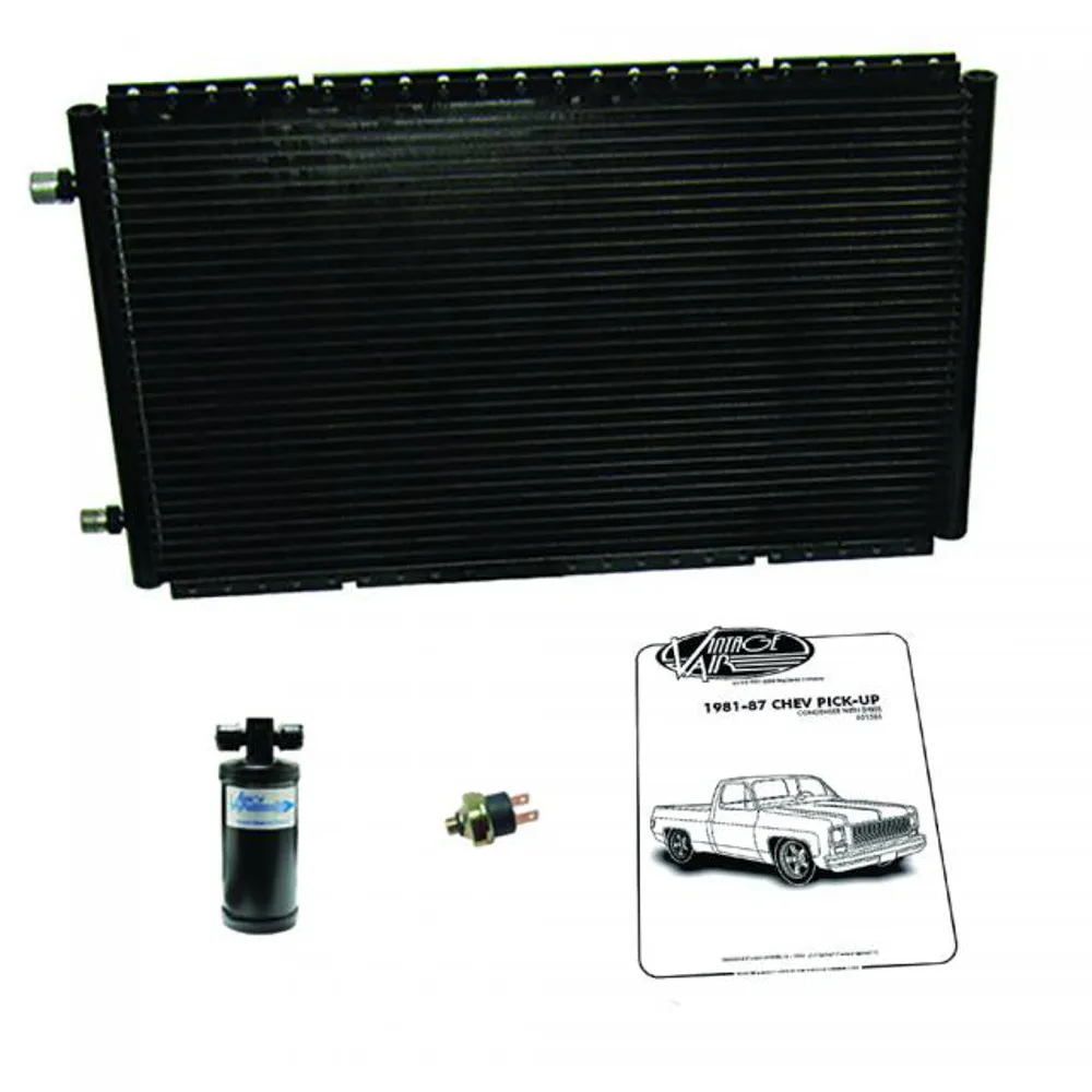 Air Conditioning Condenser – SureFit – Horizontal – 24 x 14 in – 6 AN / 8 AN Male O-Ring Fittings – Brackets / Lines – Aluminum – Black Paint – Kit