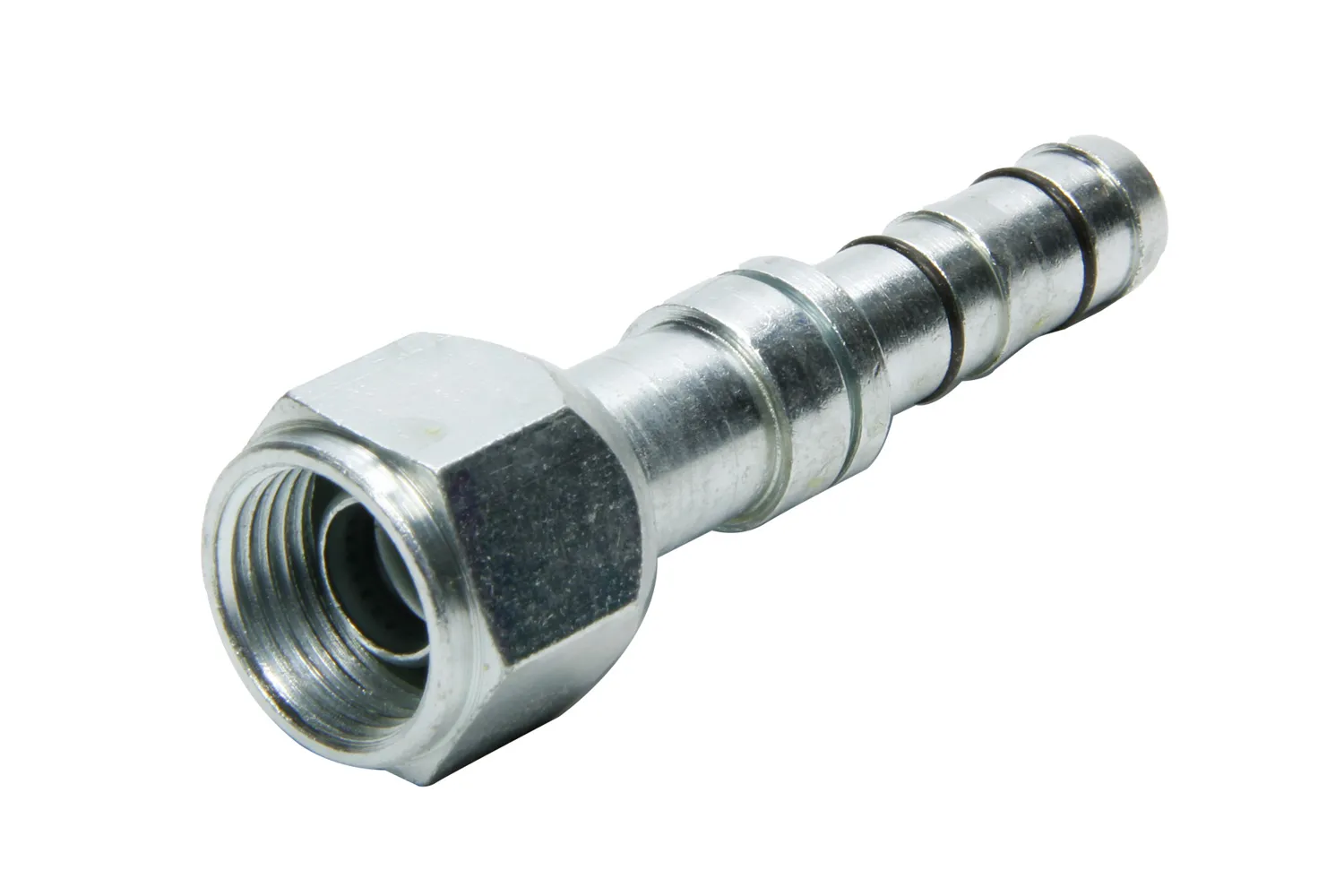 Fitting – Hose End – AC Refrigerant – Straight – 10 AN E-Z Clip to 10 AN Female O-Ring – Aluminum / Steel – Cadmium / Natural – Each