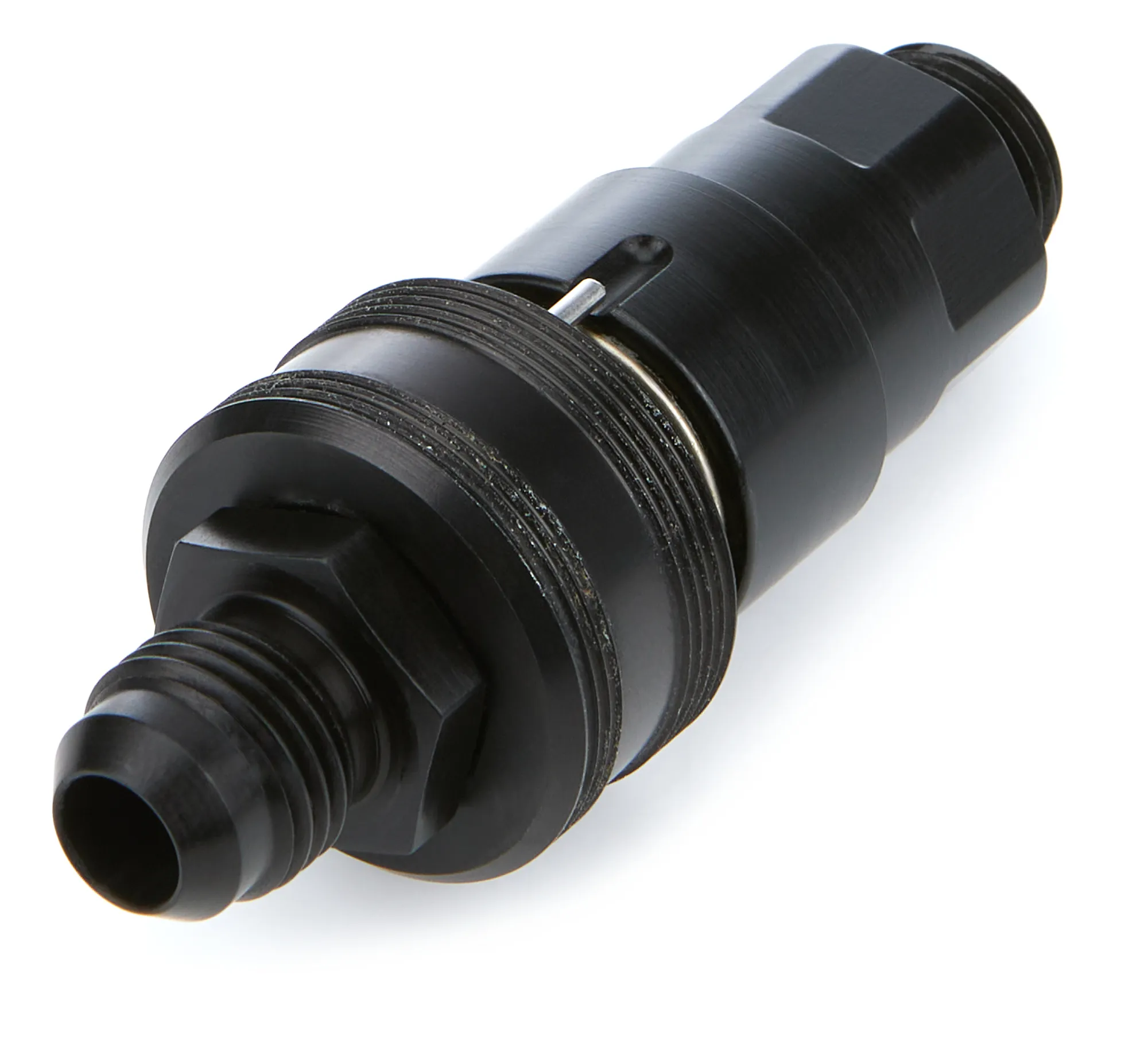 Bypass Valve Jet Can – Quick Disconnect – 6 AN Male Inlet – 6 AN Male Outlet – Aluminum – Black Anodized – Each