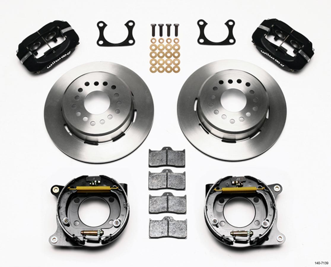 Brake System – Dynalite – Rear – 4 Piston Caliper – 12.000 in Plain Iron Rotor – Offset Hat / Parking Brake – Aluminum – Black Powder Coat – Big Ford – Kit