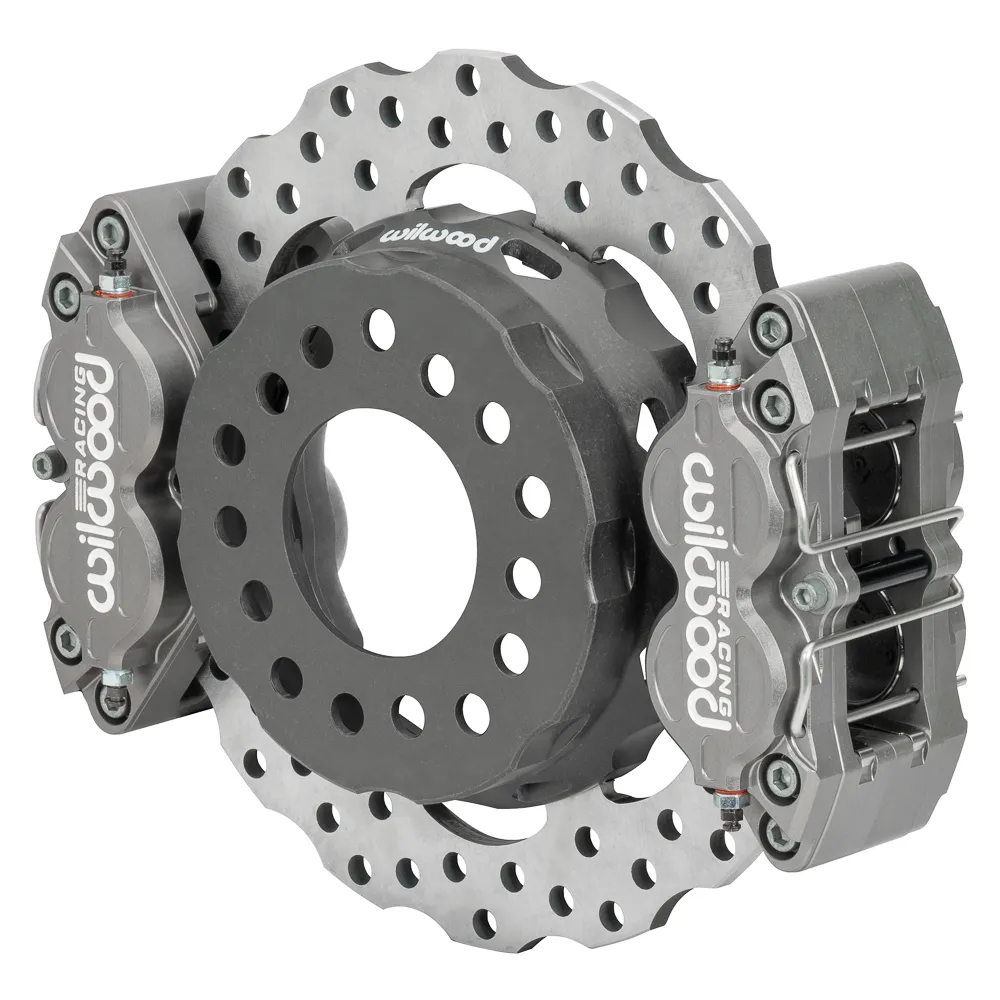 Brake System – XRD Dual SA – Rear – Dual 4 Piston Calipers – 11.25 in Drilled / Scalloped Rotor – 2.36 in Offset – Aluminum – Gray Anodized – Big Ford – Kit