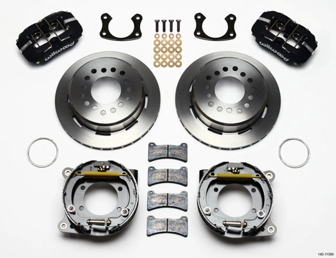Brake System – Dynapro Low-Profile – Rear – 4 Piston Caliper – 11.000 in Plain Iron Rotor – Parking Brake / Offset Hat – Aluminum – Black Powder Coat – Big Ford – Kit
