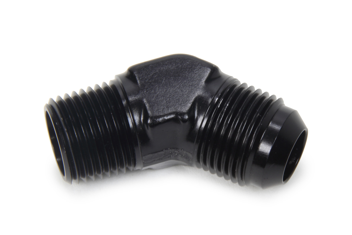 Fitting – Adapter – 45 Degree – 10 AN Male to 1/2 in NPT Male – Aluminum – Black Anodized – Each
