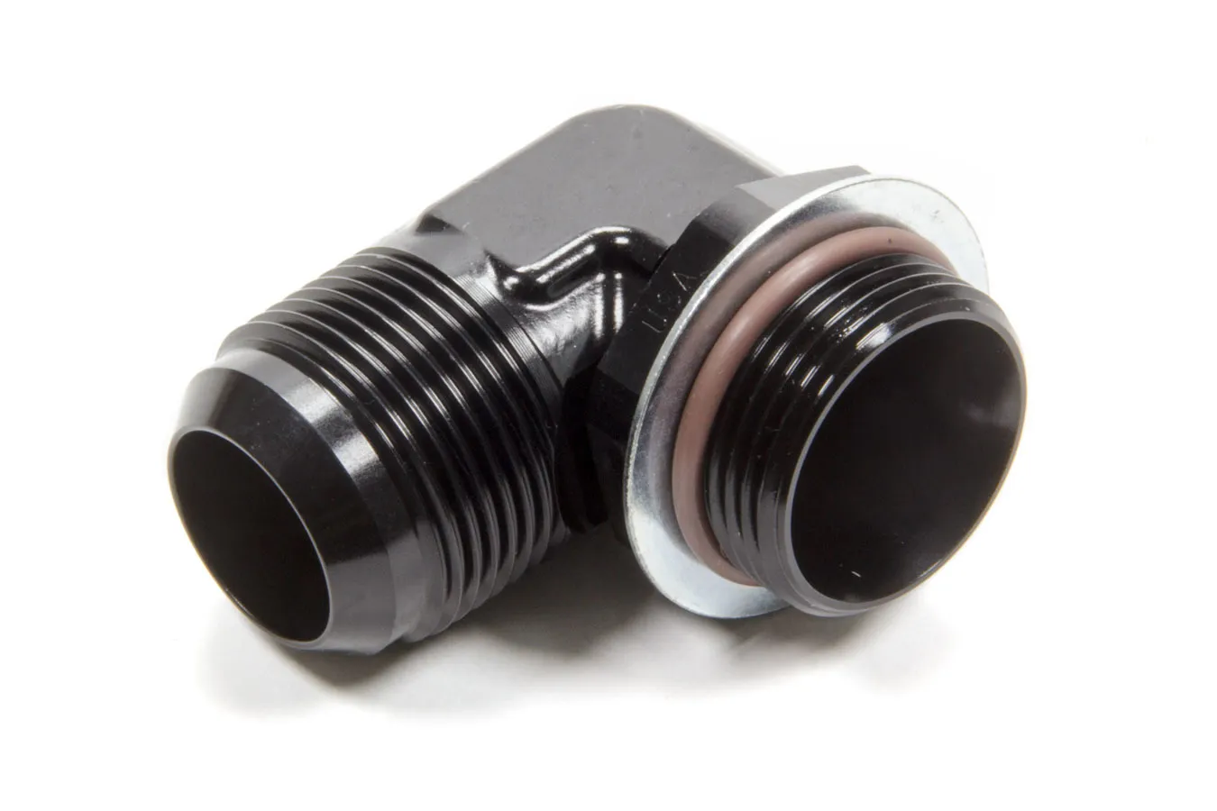 Fitting – Adapter – 90 Degree – 16 AN Male to 16 AN Male O-Ring – Ultra Low Profile – Aluminum – Black Anodized – Each